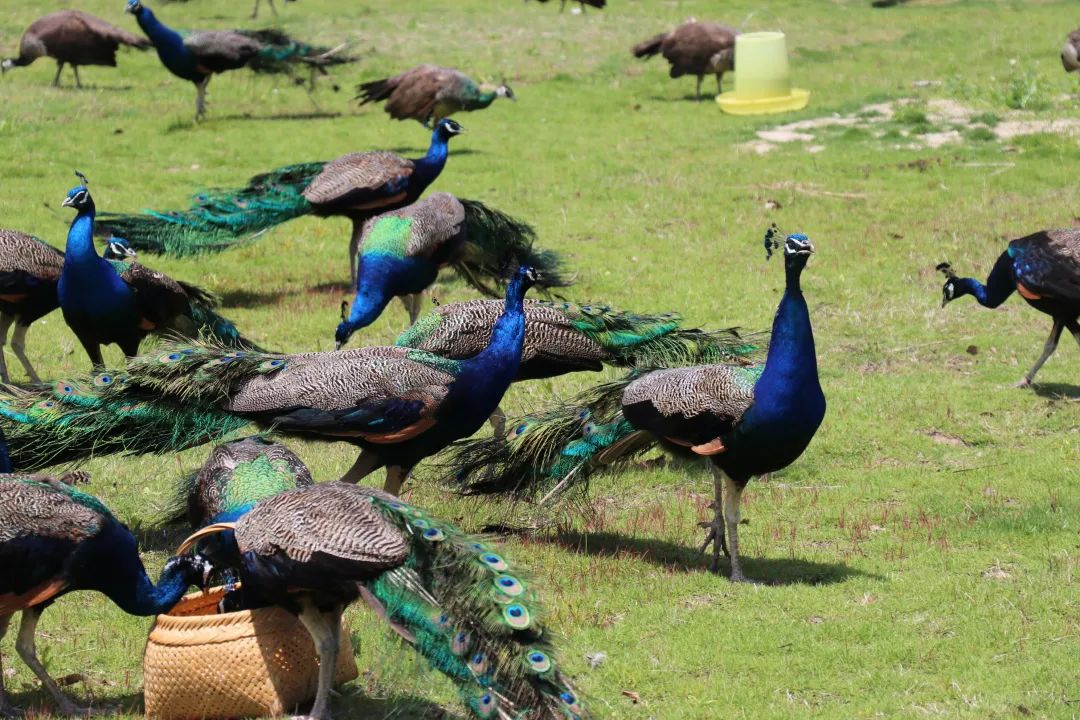 这里圈养着200多只蓝孔雀,当它们在工作人员的指挥下越过波光粼粼的湖面,接连不断从对面湖岸飞来时甚是壮观。 ……