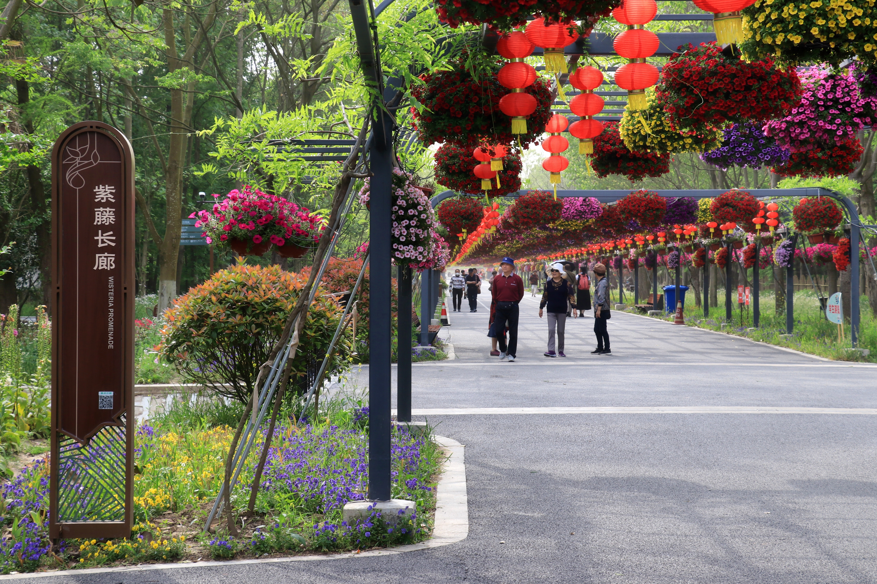 长廊全长1000m,两侧380株紫藤由著名的紫藤园艺大师——汪麟老师亲自打造。使用熊野、九尺、八王寺、松本等紫藤品种交错搭配,以穗形多变的方式,进行段落化布置,形成双层叠落花海。 ……